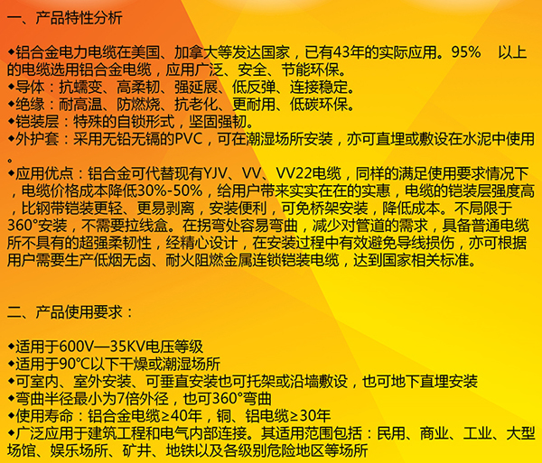鋁合金電纜:鋁合金電纜ZR-YJLHV 瀏覽:3687